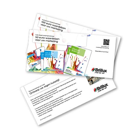 Reclame werkt: profiteer van 50 euro korting op diverse marketingaanbiedingen van Brillux. Of het nu gaat om de externe presentatie van uw bedrijf, een gerichte klantenbenadering of de marketing van speciale diensten – Brillux biedt u ondersteuning op maat. Dit omvat gedrukt reclamemateriaal, giveaways, campagnes en nog veel meer.