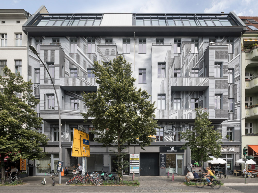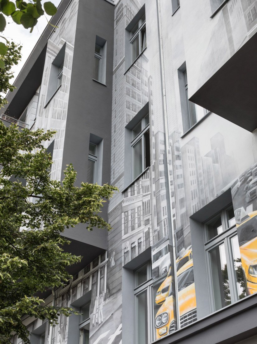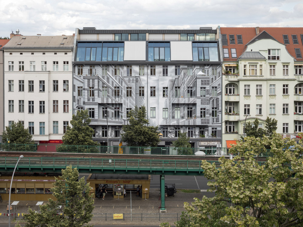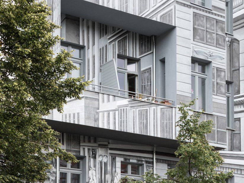 Wat mag verf? In Prenzlauer Berg, kan ze alles doen: de illusieschildering op de gevel van het appartementengebouw Schönhauser Allee 43a/44 trekt ieders aandacht. Het brengt de kijker in een andere wereld.